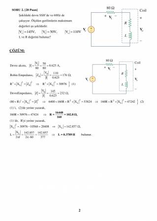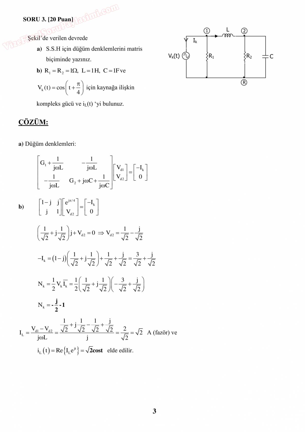 Vize ve Final Soruları / Sakarya Üniversitesi / Elektrik Devreleri-2