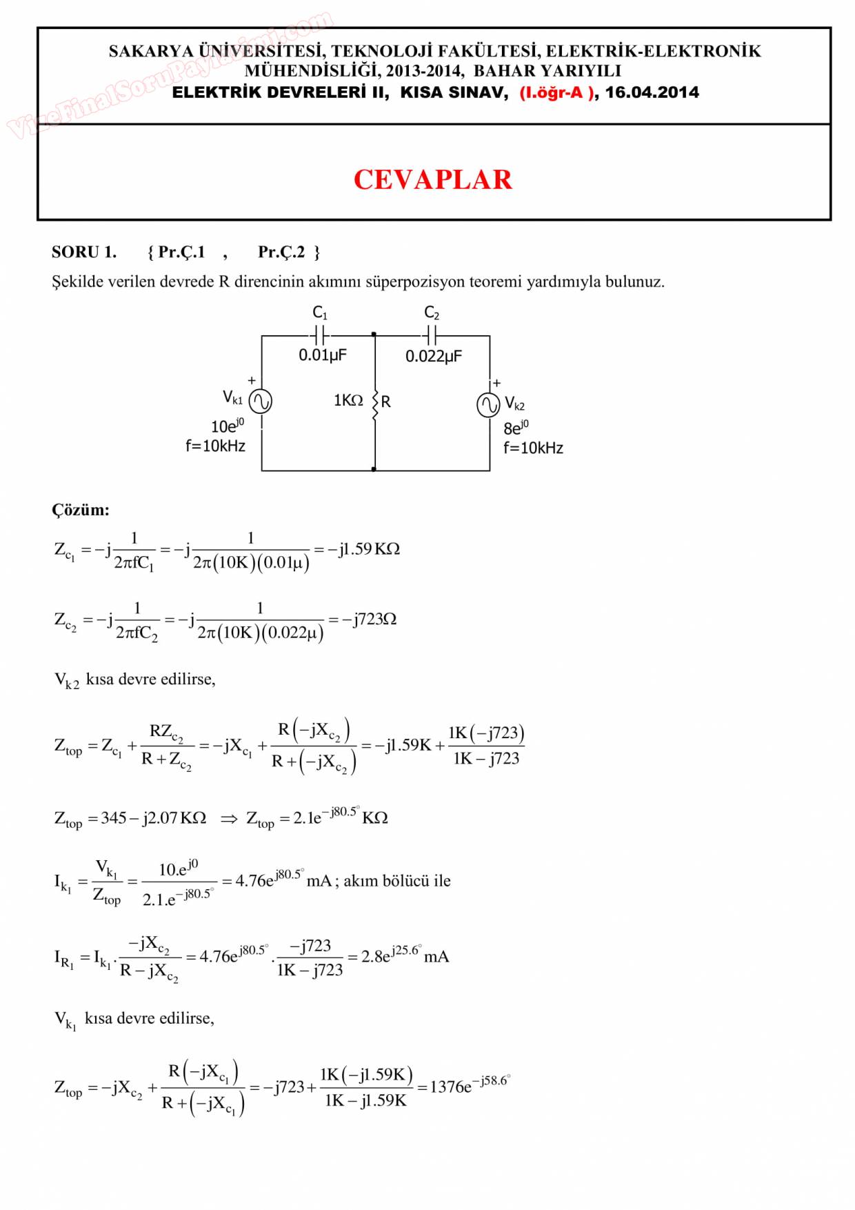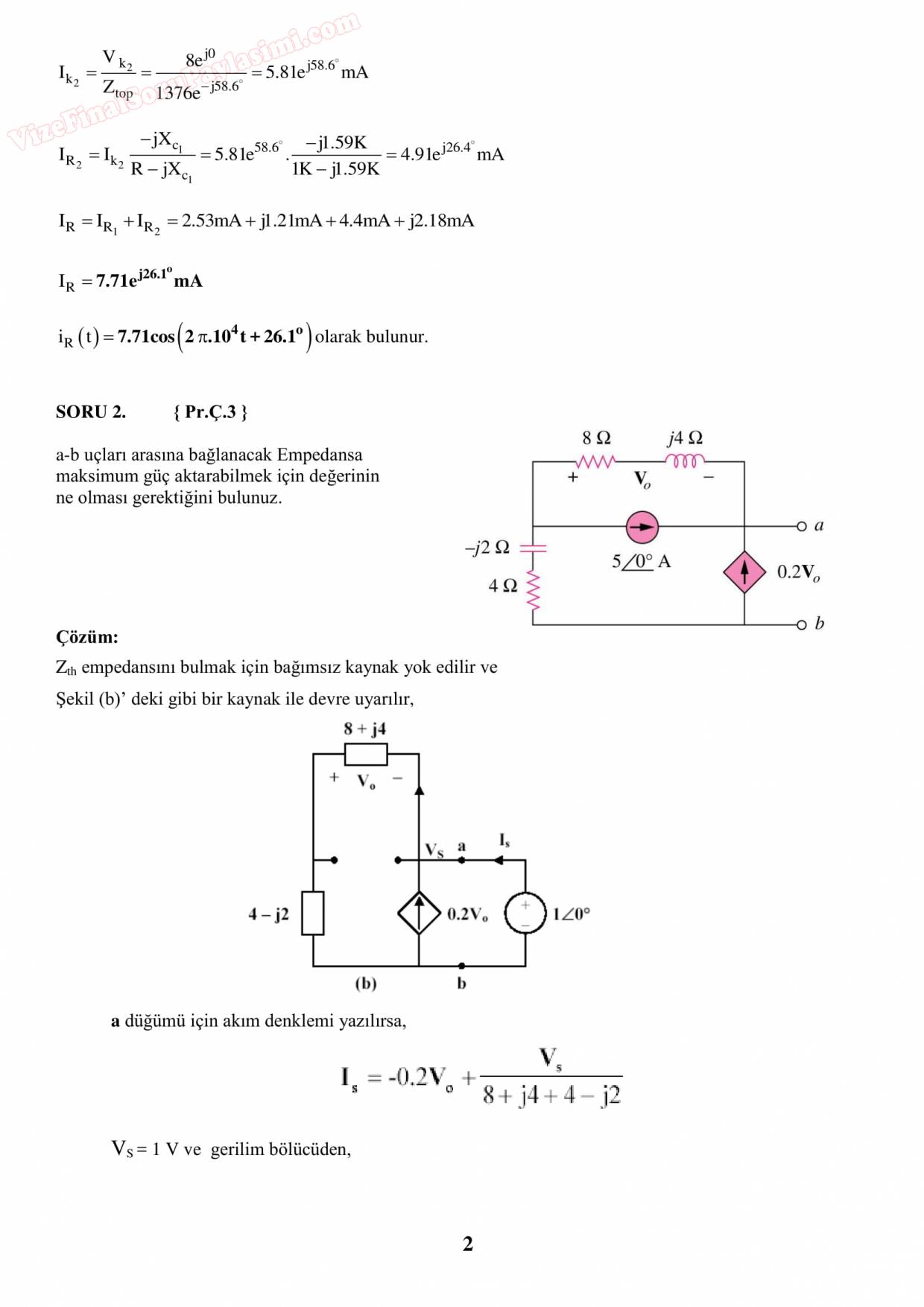 Vize ve Final Soruları / Sakarya Üniversitesi / Elektrik Devreleri-2