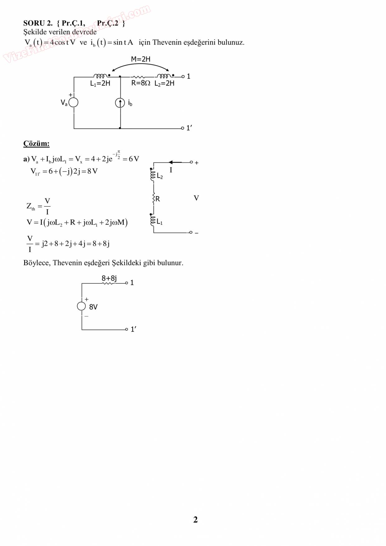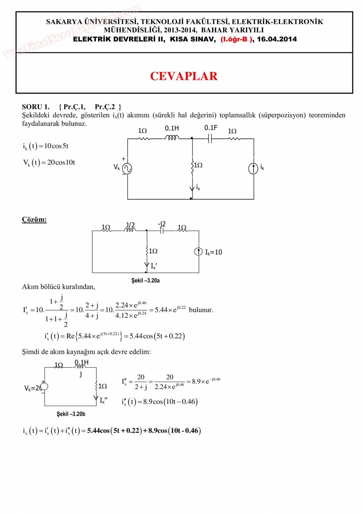 Vize ve Final Soruları / Sakarya Üniversitesi / Elektrik Devreleri-2