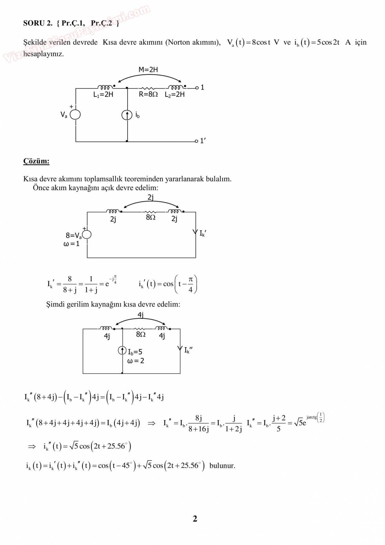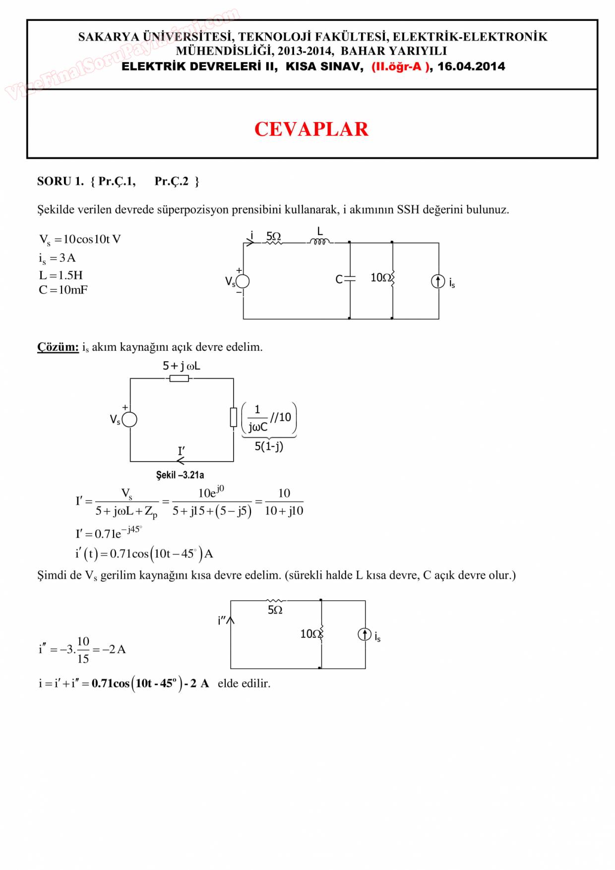 Vize ve Final Soruları / Sakarya Üniversitesi / Elektrik Devreleri-2