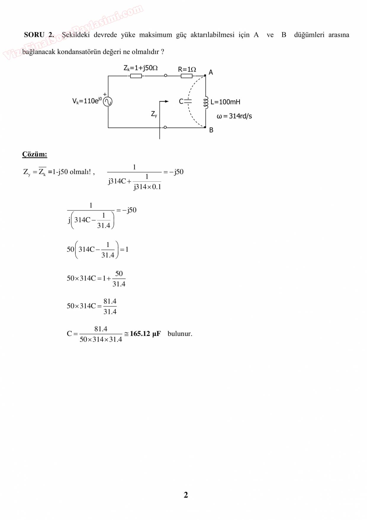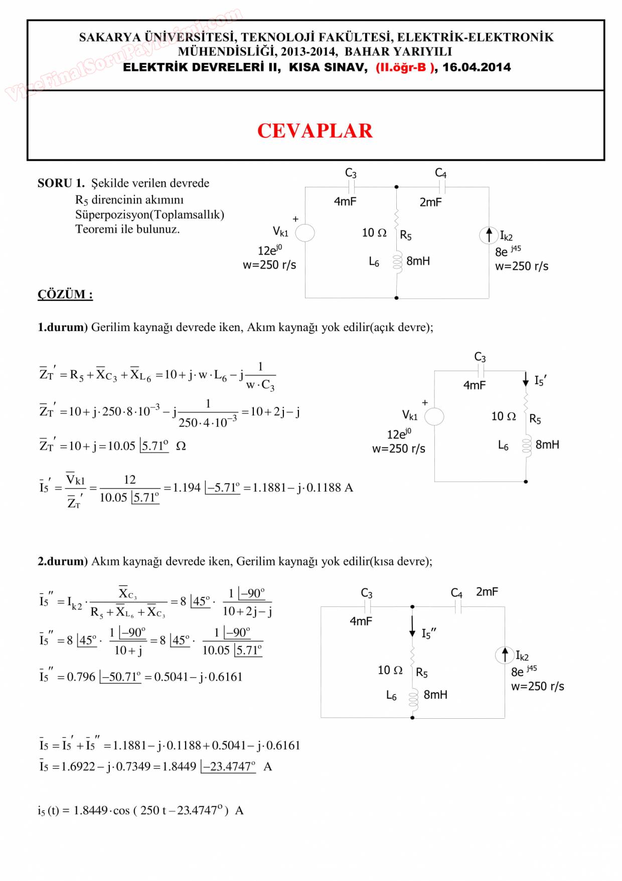 Vize ve Final Soruları / Sakarya Üniversitesi / Elektrik Devreleri-2