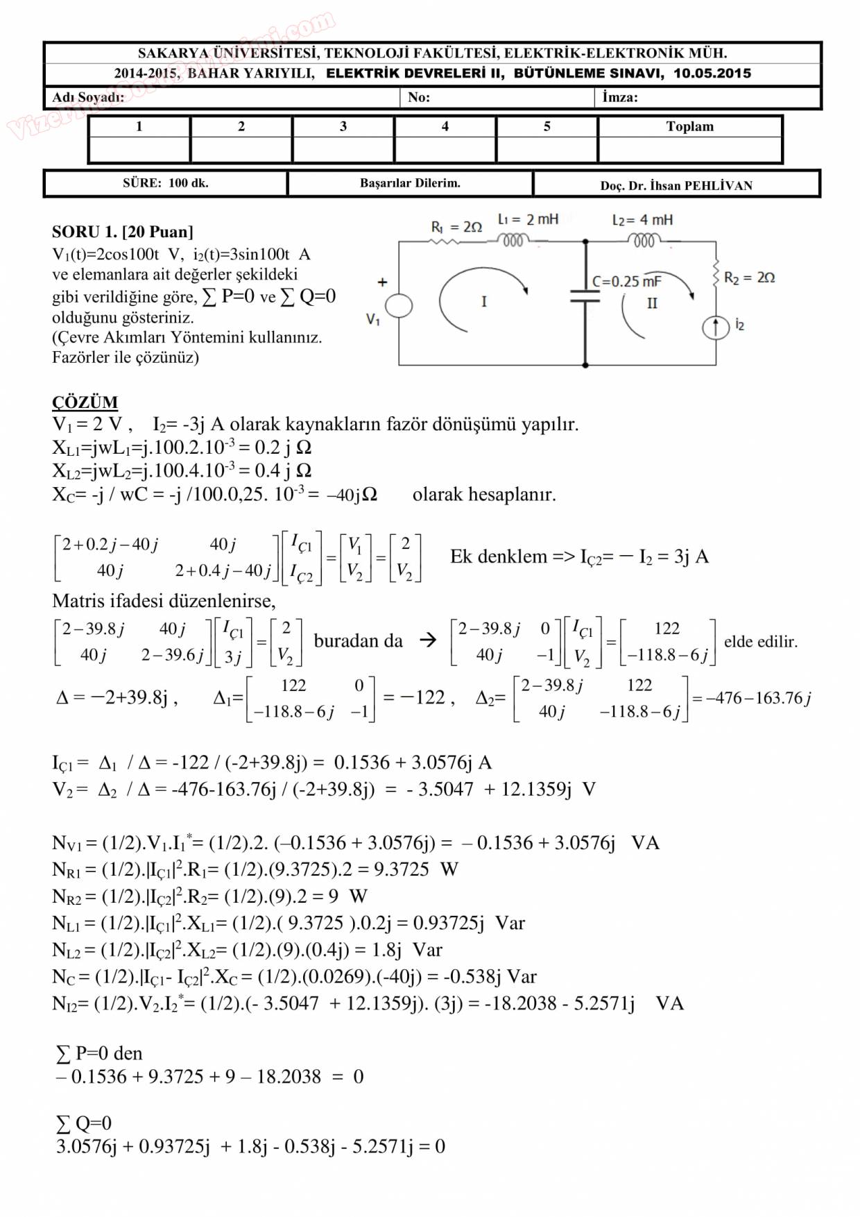 Elektrik Devreleri-2 Bütünleme Soruları Ve Cevapları-2013 24-04-2015, 19:38