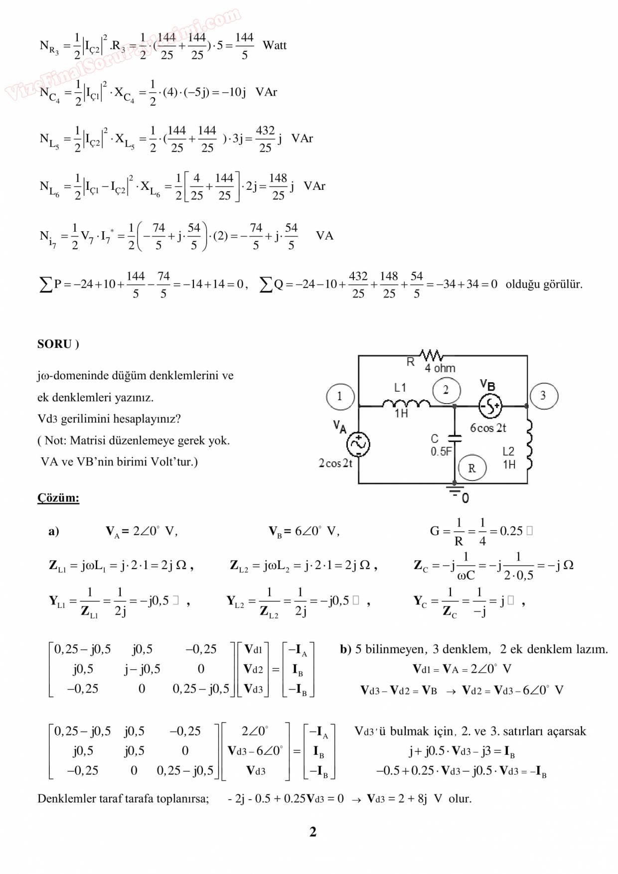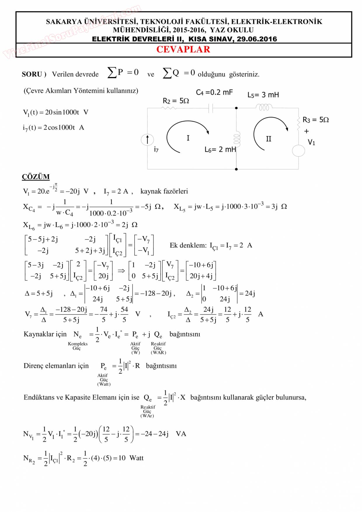 Vize ve Final Soruları / Sakarya Üniversitesi / Elektrik Devreleri-2