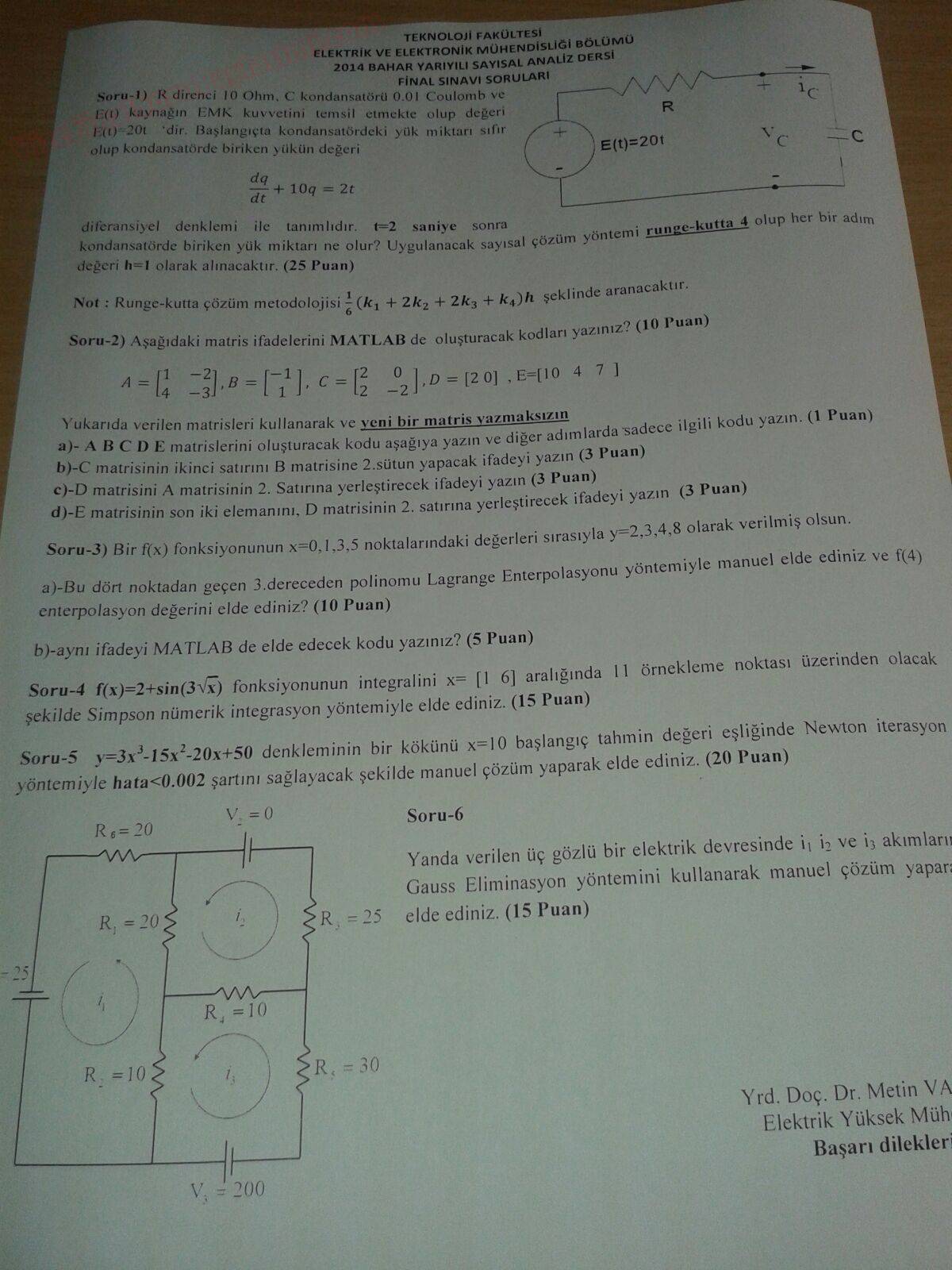 Vize ve Final Soruları / Sakarya Üniversitesi / Sayısal Analiz Dersi