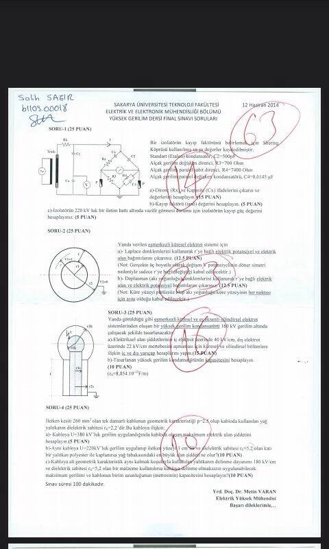 Vize ve Final Soruları / Sakarya Üniversitesi / YüKsek gerilim tekniği
