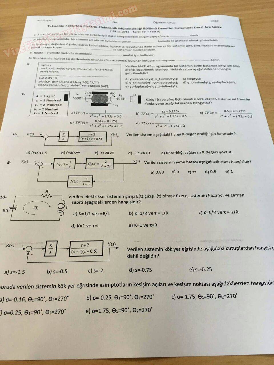 Denetim Sistemleri Final Soruları 28-11-2019, 11:15