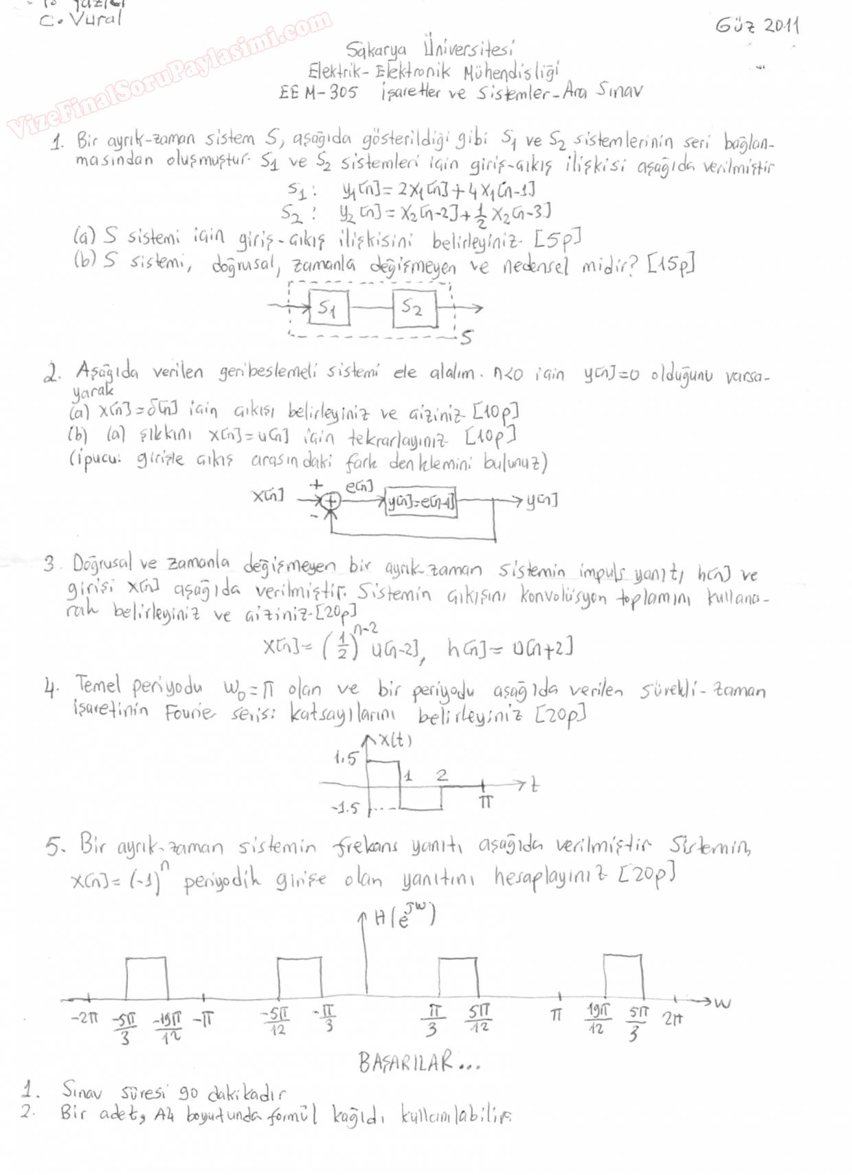 Vize ve Final Soruları / Sakarya Üniversitesi / işaret ve Sistemler Dersi