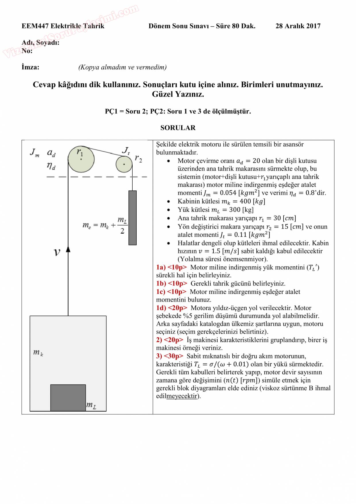 Elektrikle Tahrik Dersi Final Soruları 28-11-2019, 19:40