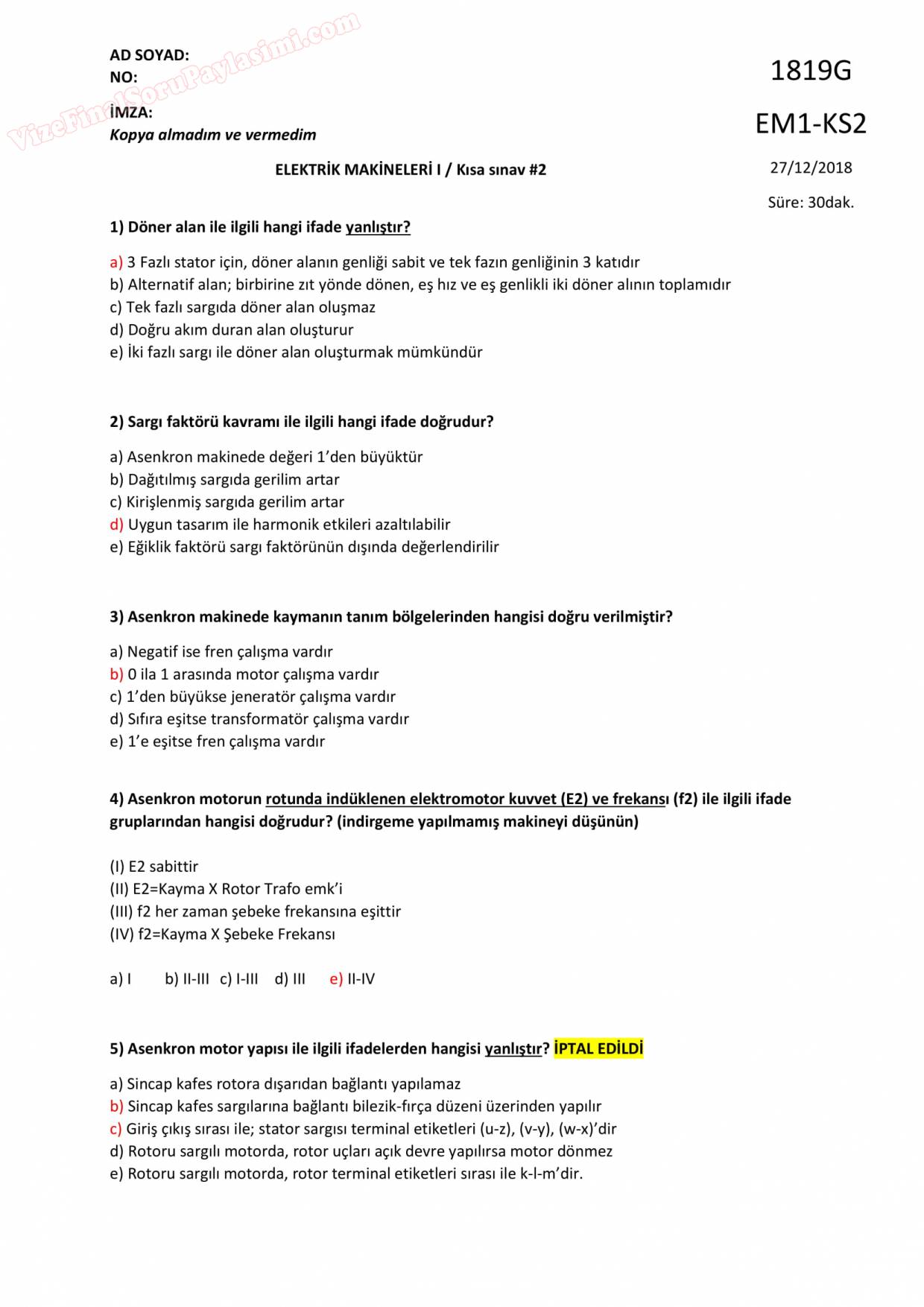 Elektrik Makineleri Kısa Sınav Soruları 28-11-2019, 20:05