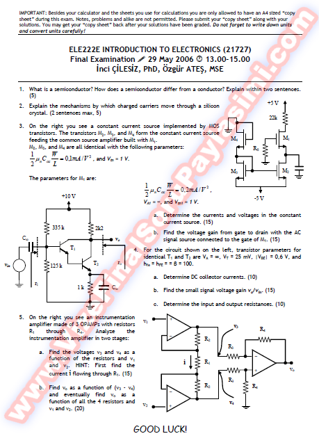 Vize ve Final Soruları / İstanbul Teknik Üniversitesi / Elektronik Devreleri