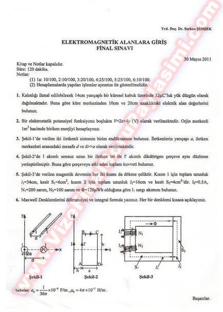Elektromagnetik Alana Giriş Vize Soruları-2011 1-12-2014, 00:20