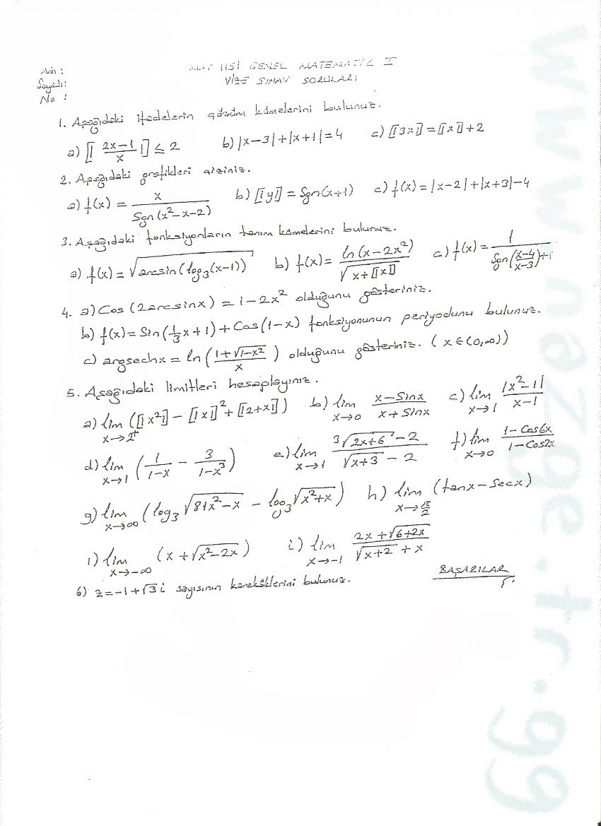 Matematik 1 Arasınav Soruları 3-12-2014, 21:11