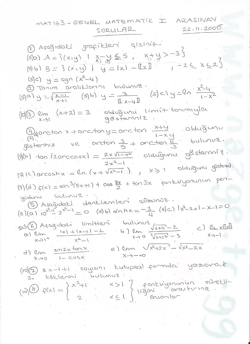 Matematik 1 Arasınav Soruları 3-12-2014, 21:11