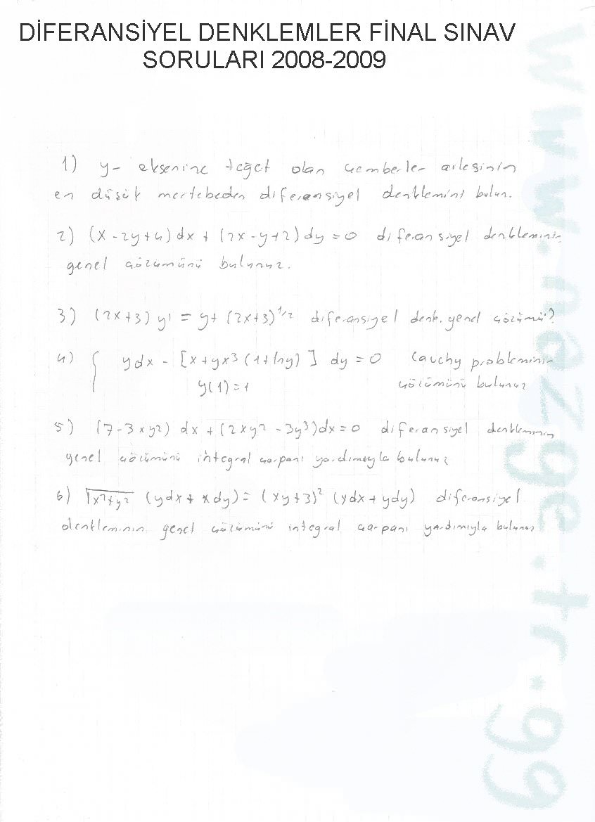 Tunceli Üniversitesi Mühendislik Matematiği Diferansiyel Denklemler Final Soruları 21-07-2014, 02:10