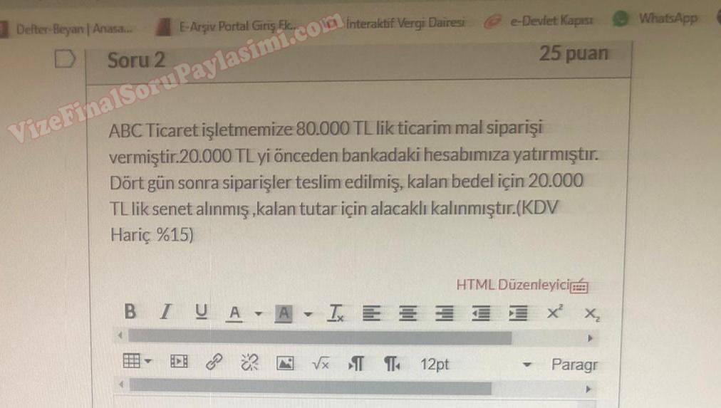 Vize ve Final Soruları / Ordu Üniversitesi / Dönem Sonu Muhasebe İşlemleri