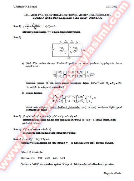 Diferansiyel Denklemler Vize Soruları Ve Cevapları - 22.11.2011