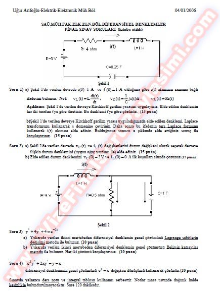Diferansiyel Denklemler Final Soruları Ve Cevapları - 04.01.2006