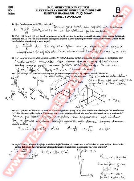 Elektrik Makinaları-1 Vize Soruları Ve Cevapları - 16.04.2000
