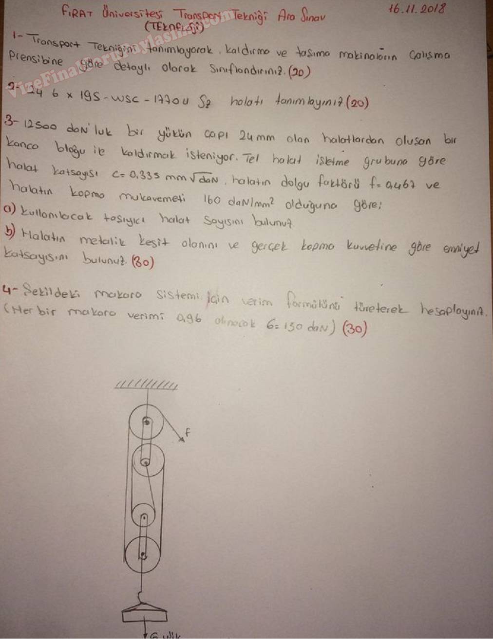 Transport Tekniği vize soruları ara sinav sorulari firat uni universitesi