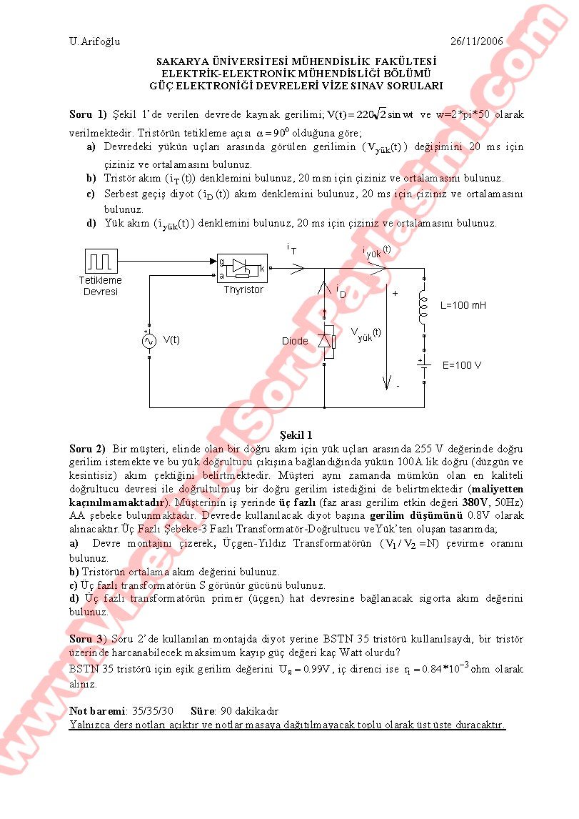 Güç Elektroniği Vize Soruları Ve Cevapları - 26.11.2006