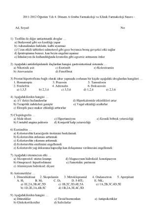 Farmakoloji ve Klinik Farmakoloji Dersi Sınav Soruları 5-05-2022, 00:14