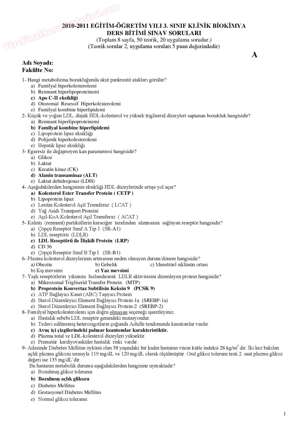 Vize ve Final Soruları / İstanbul Üniversitesi / Klinik Biyokimya Dersi