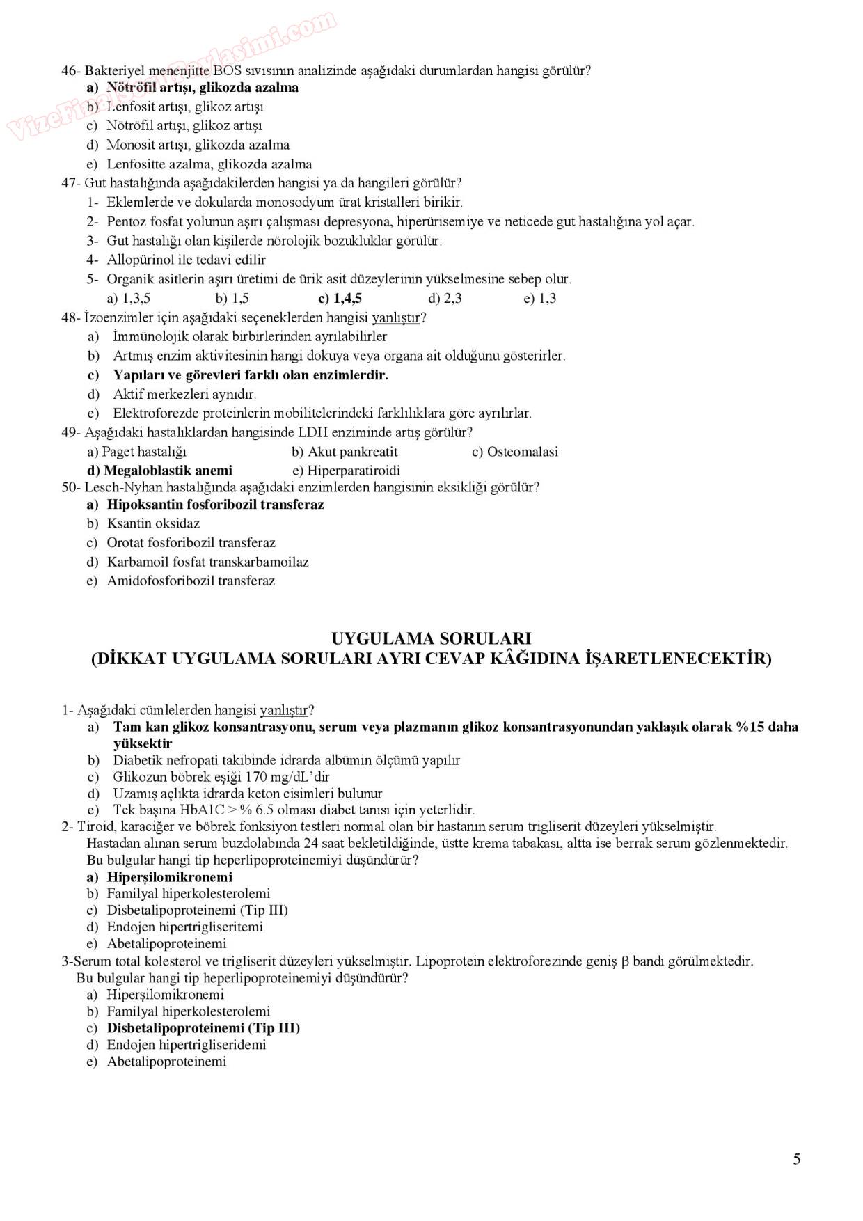 Vize ve Final Soruları / İstanbul Üniversitesi / Klinik Biyokimya Dersi