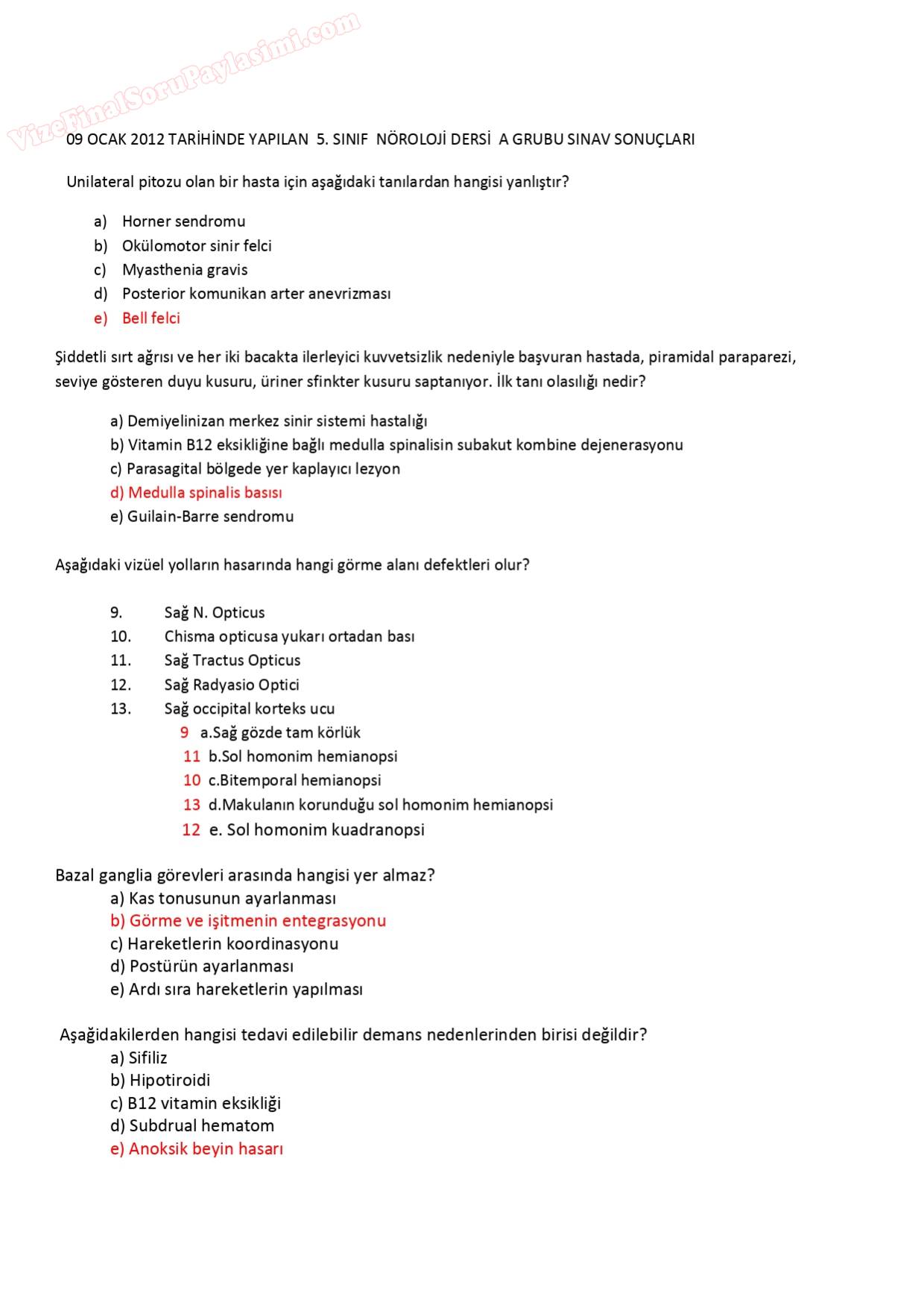 Vize ve Final Soruları / İstanbul Üniversitesi / Nöroloji Dersi