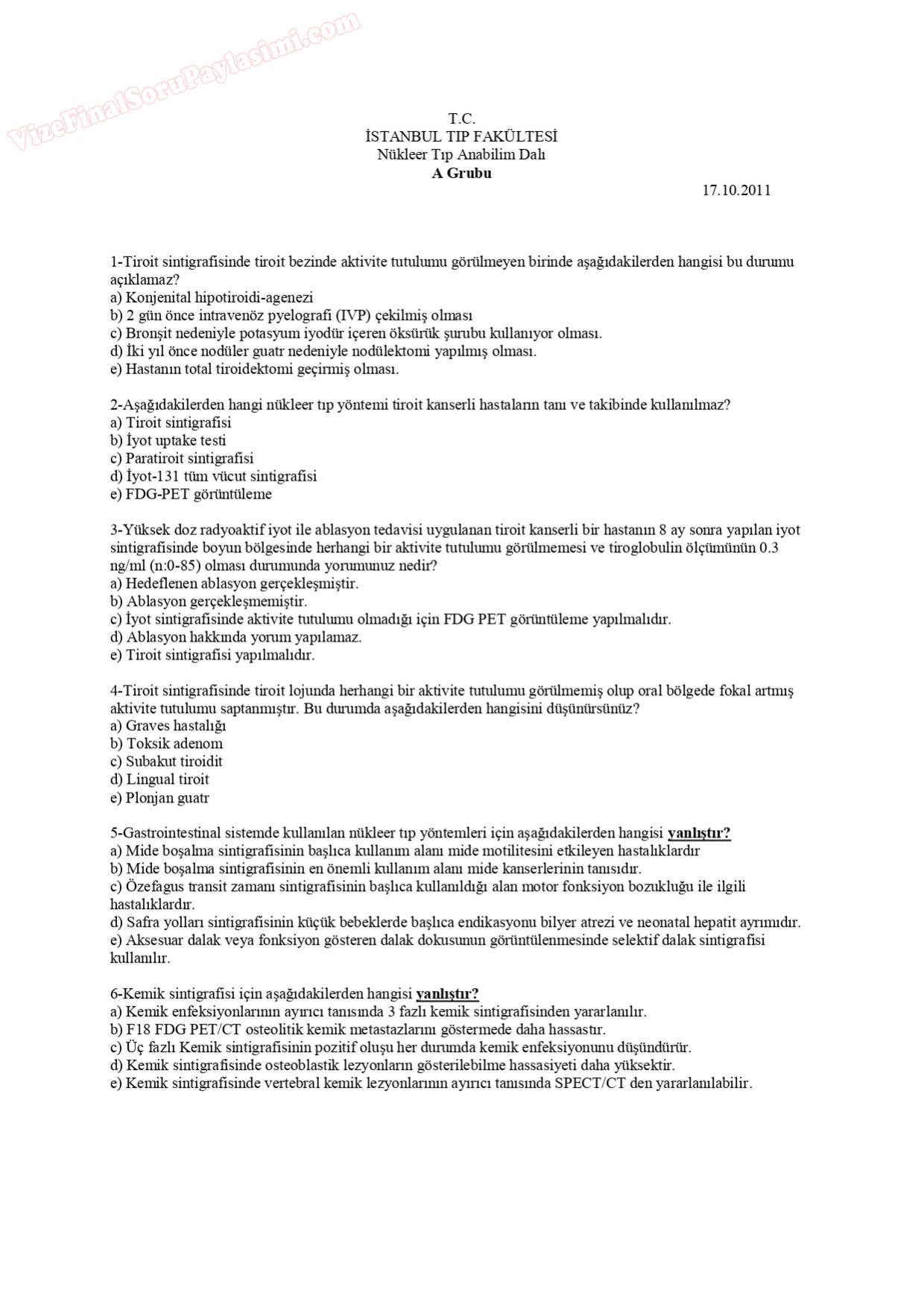 Vize ve Final Soruları / İstanbul Üniversitesi / Nükleer Tıp Dersi