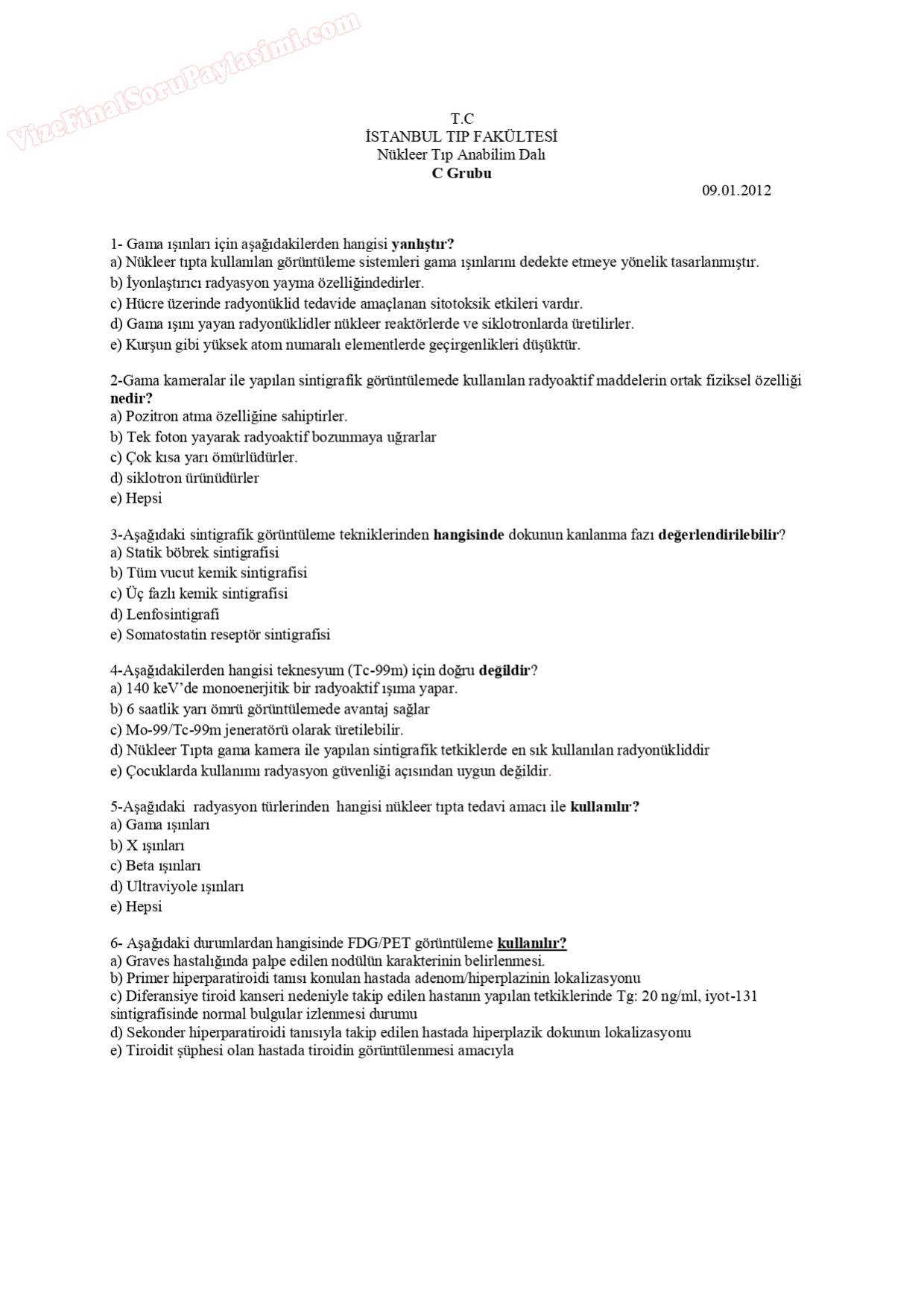 Vize ve Final Soruları / İstanbul Üniversitesi / Nükleer Tıp Dersi