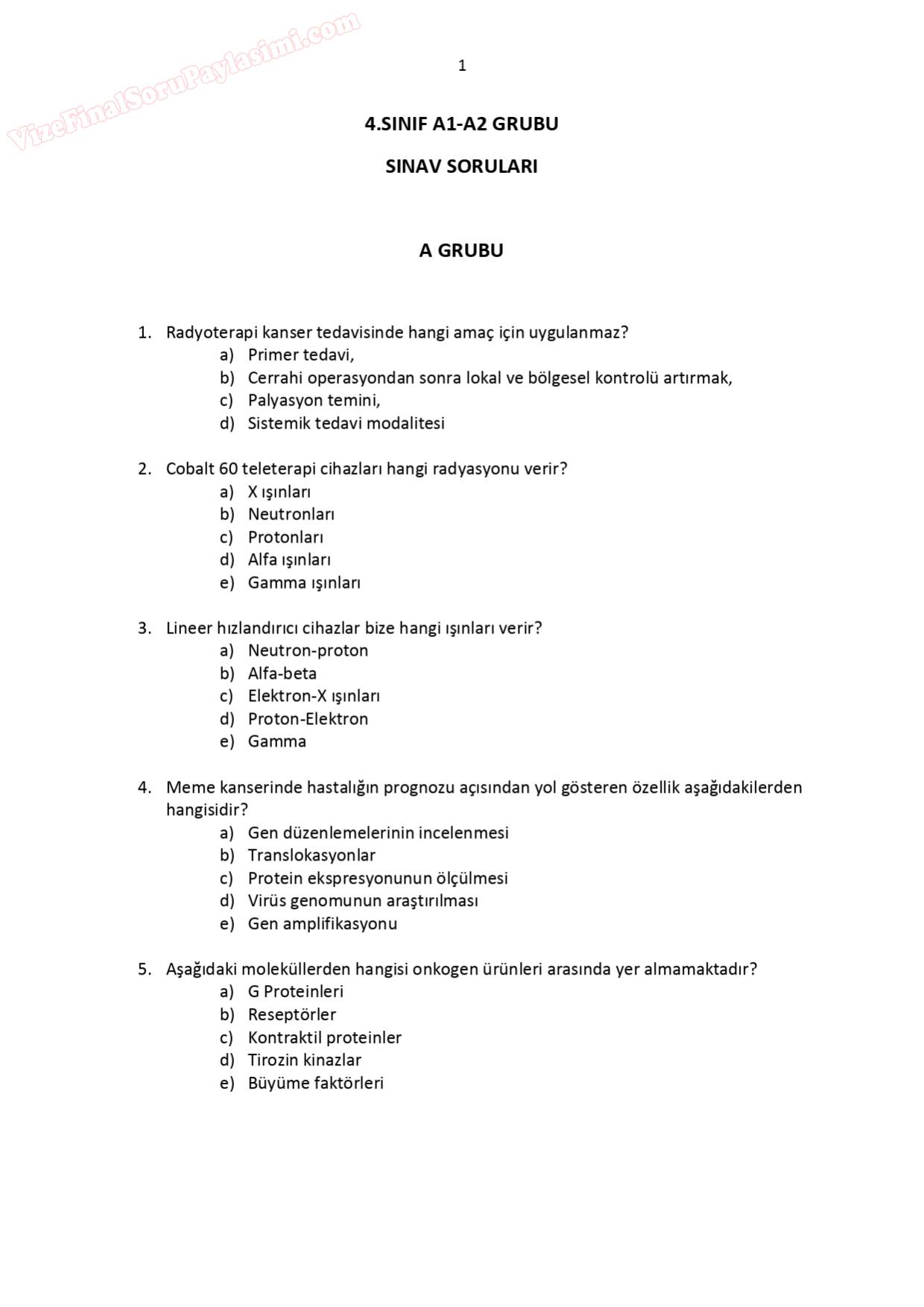 radyasyon onkolojisi agrubu sınav vize final sınav soruları GERİ DÖN-
