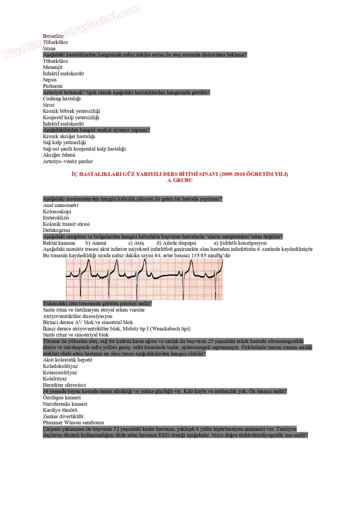 Semiyoloji İç Hastalıkları Ders Bitimi Sınav Soruları A Grrubu