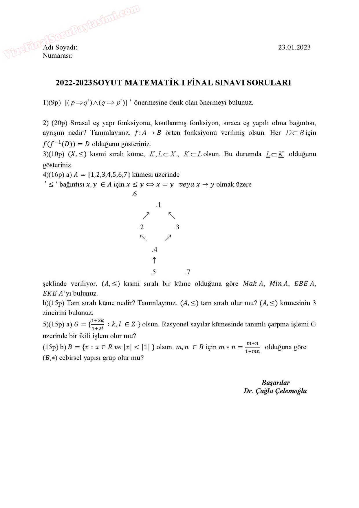 Soyut Matematik-1 Final Soruları ve Cevapları