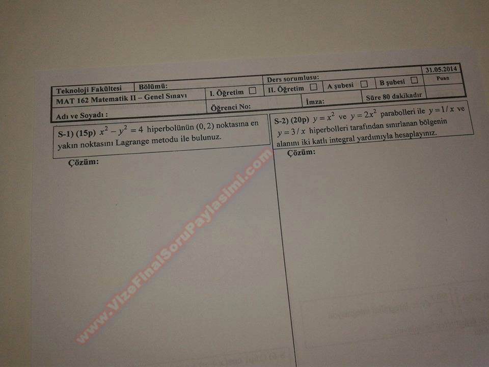 Matematik -2 Bütünleme Soruları - 2014 19-07-2014, 00:37