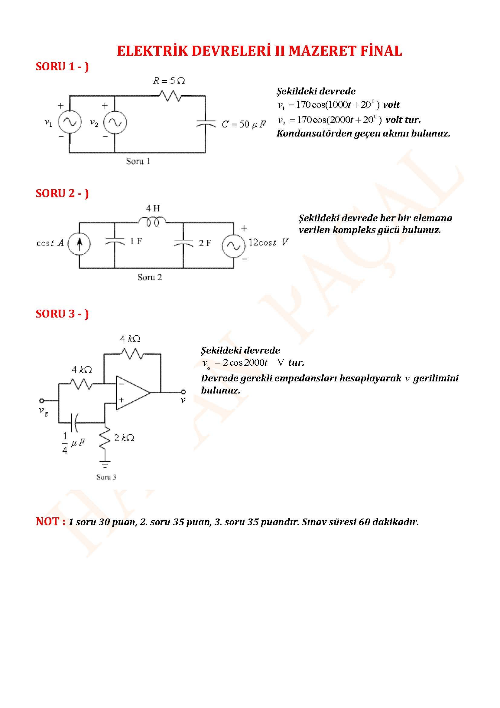 Vize ve Final Soruları / Sakarya Üniversitesi / Elektrik Devreleri-2