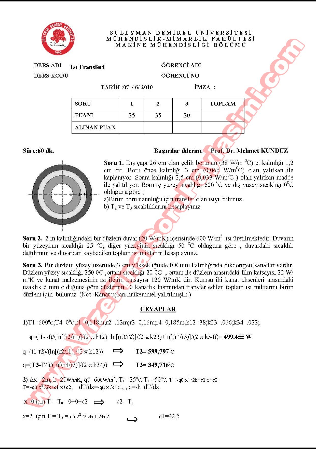 Isı Transferi Final Soruları Ve Cevapları - 07.06.2010