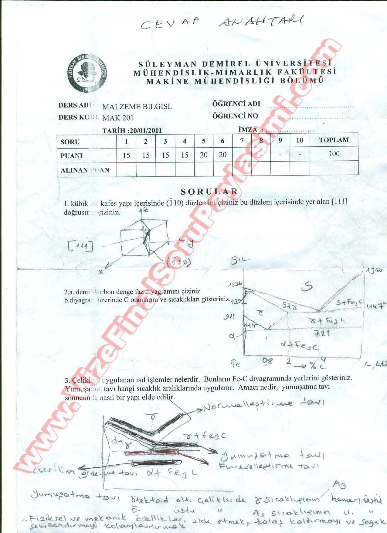 Malzeme Bilgisi Final Soruları Ve Cevapları - 2011