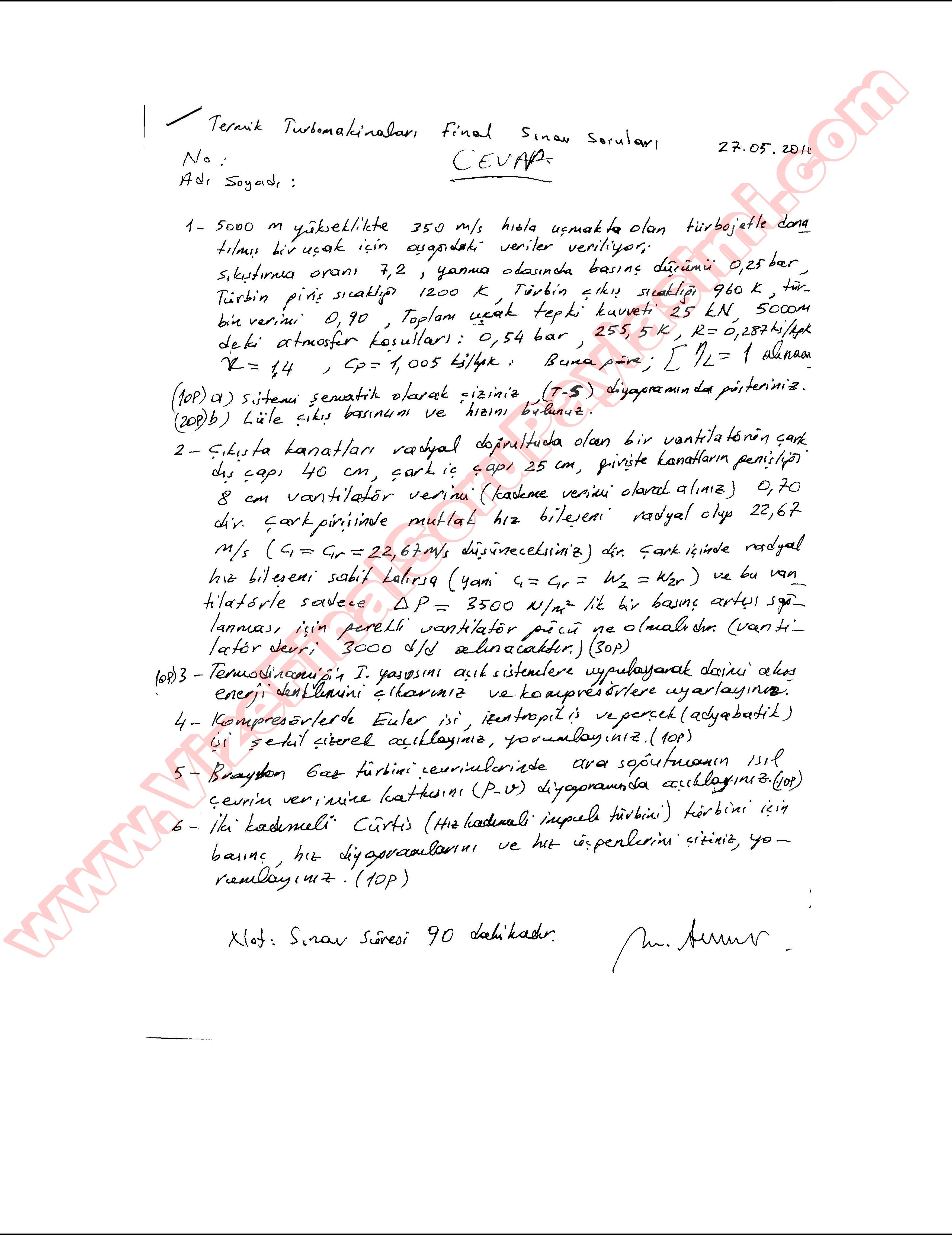 Termik Turbo Makinaları Final Soruları Ve Cevapları - 27.05.2010