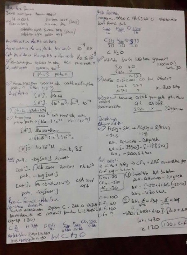 Üniversite Ders Notları / Kimya Dersi Ders Notları