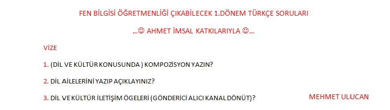 Vize ve Final Soruları / Fırat Üniversitesi / Türkçe Dersi