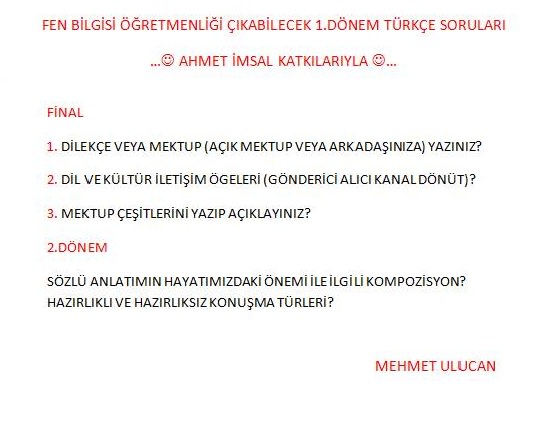 Vize ve Final Soruları / Fırat Üniversitesi / Türkçe Dersi