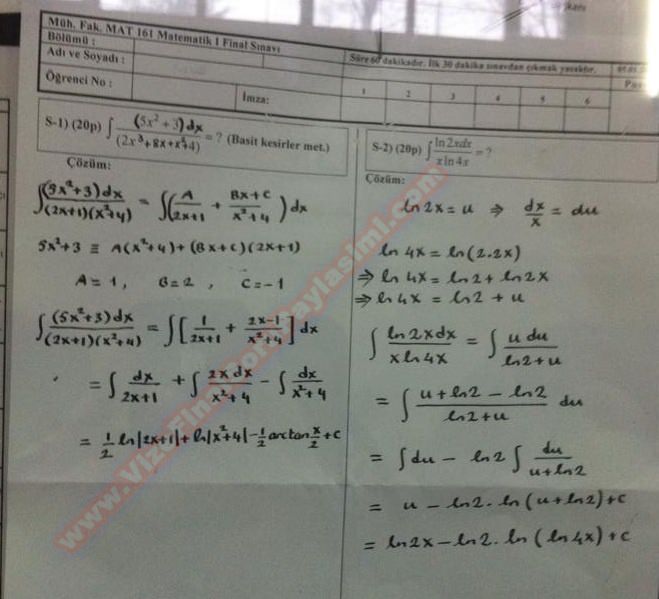 Matematik -2 Final Sınav Soruları ve Çözümleri - 2014 17-06-2014, 09:22