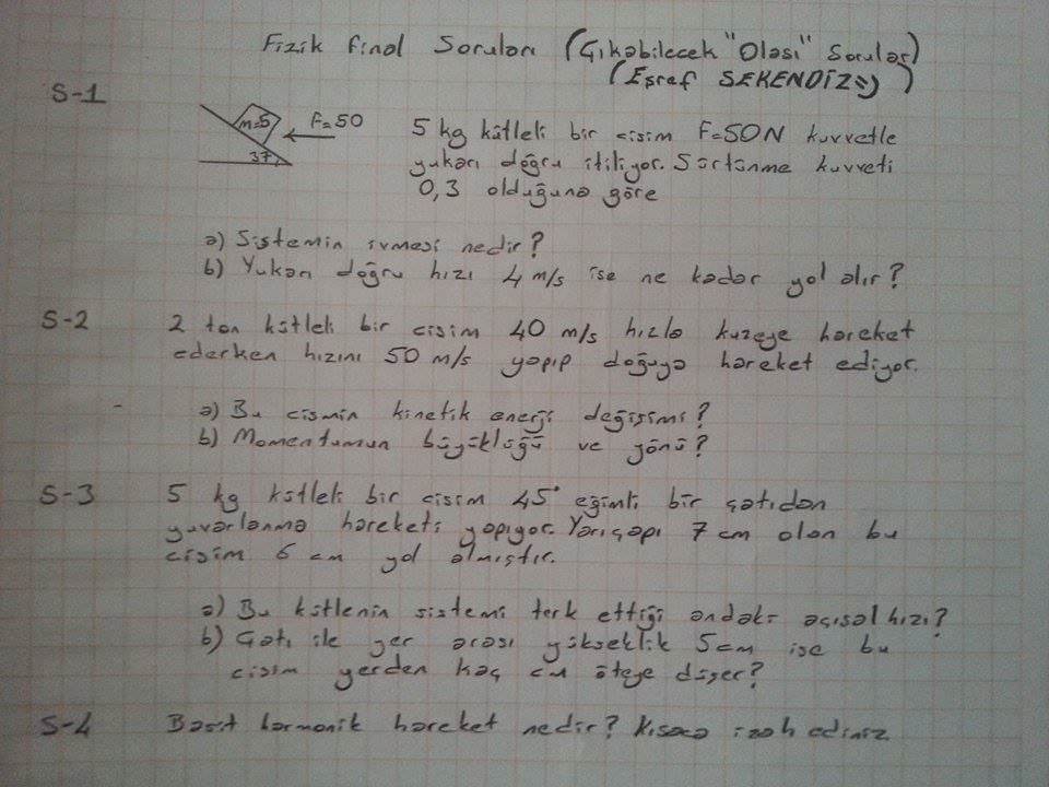 Fizik 1 Final Soruları Ve Cevapları 31-10-2014, 22:18