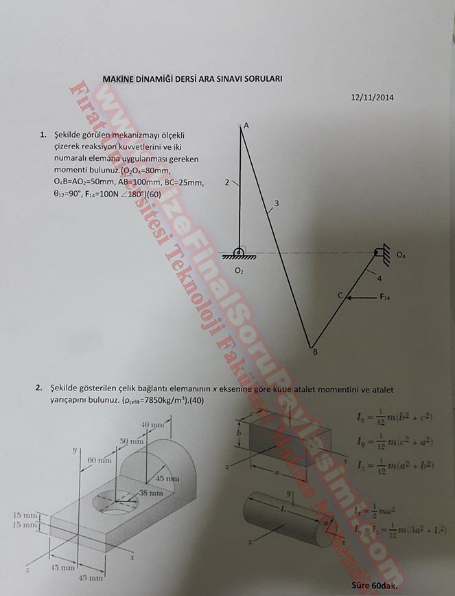 Vize ve Final Soruları / Fırat Üniversitesi / Makina Dinamiği