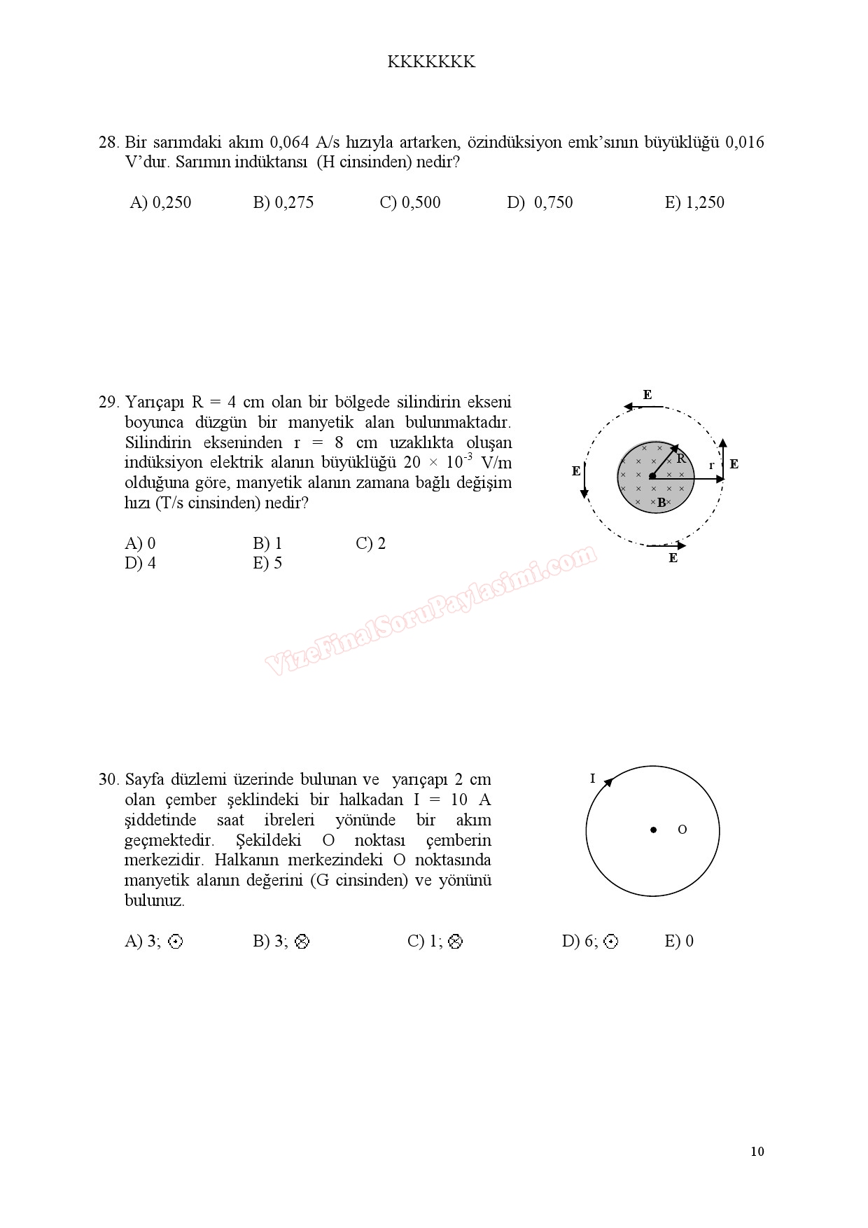 Fizik -2 Arasınav Soruları Vize Soruları 2011 Düzce Üniversitesi