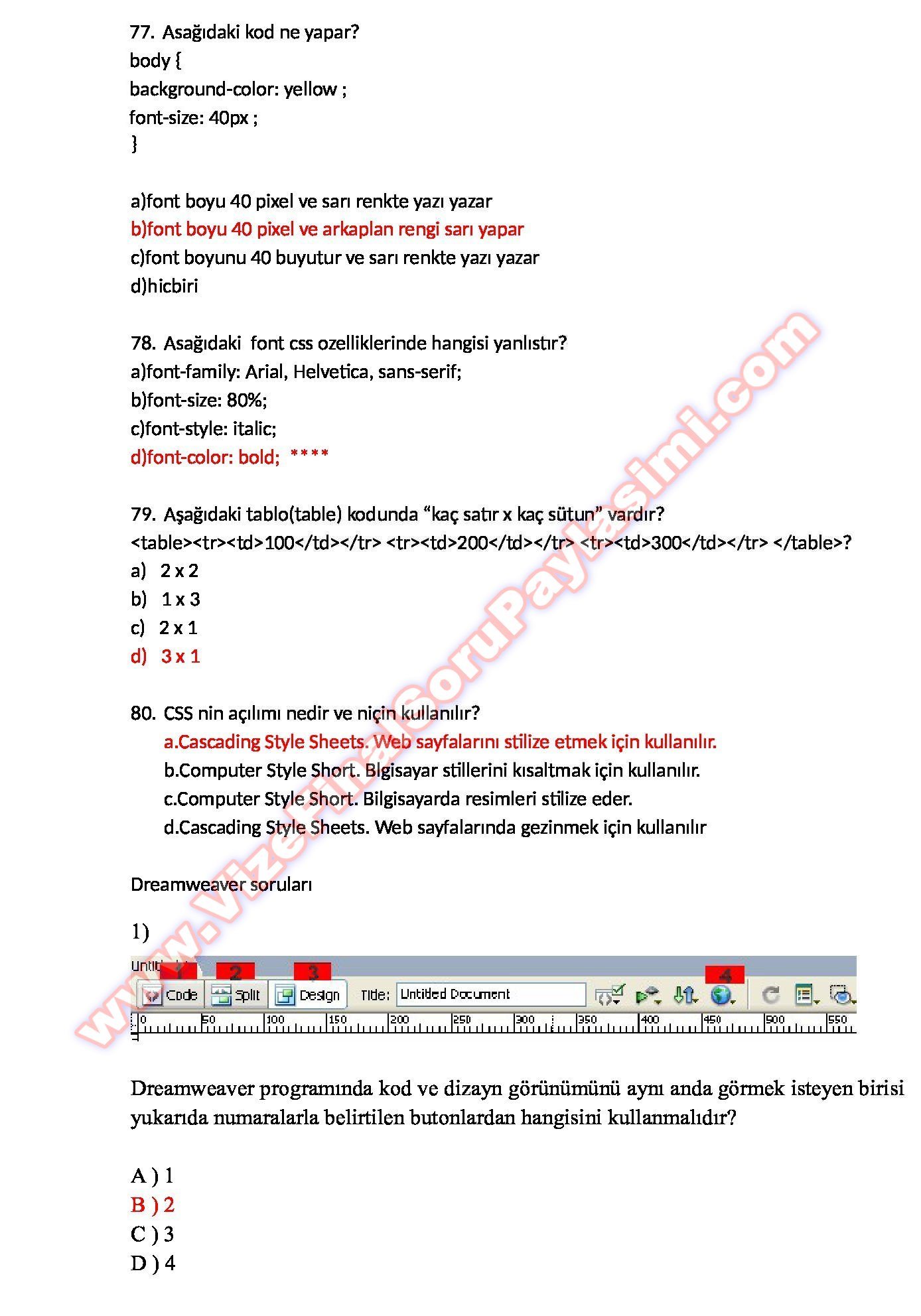 wep tasarimi dersi vize final calisma sorulari test cevaplari