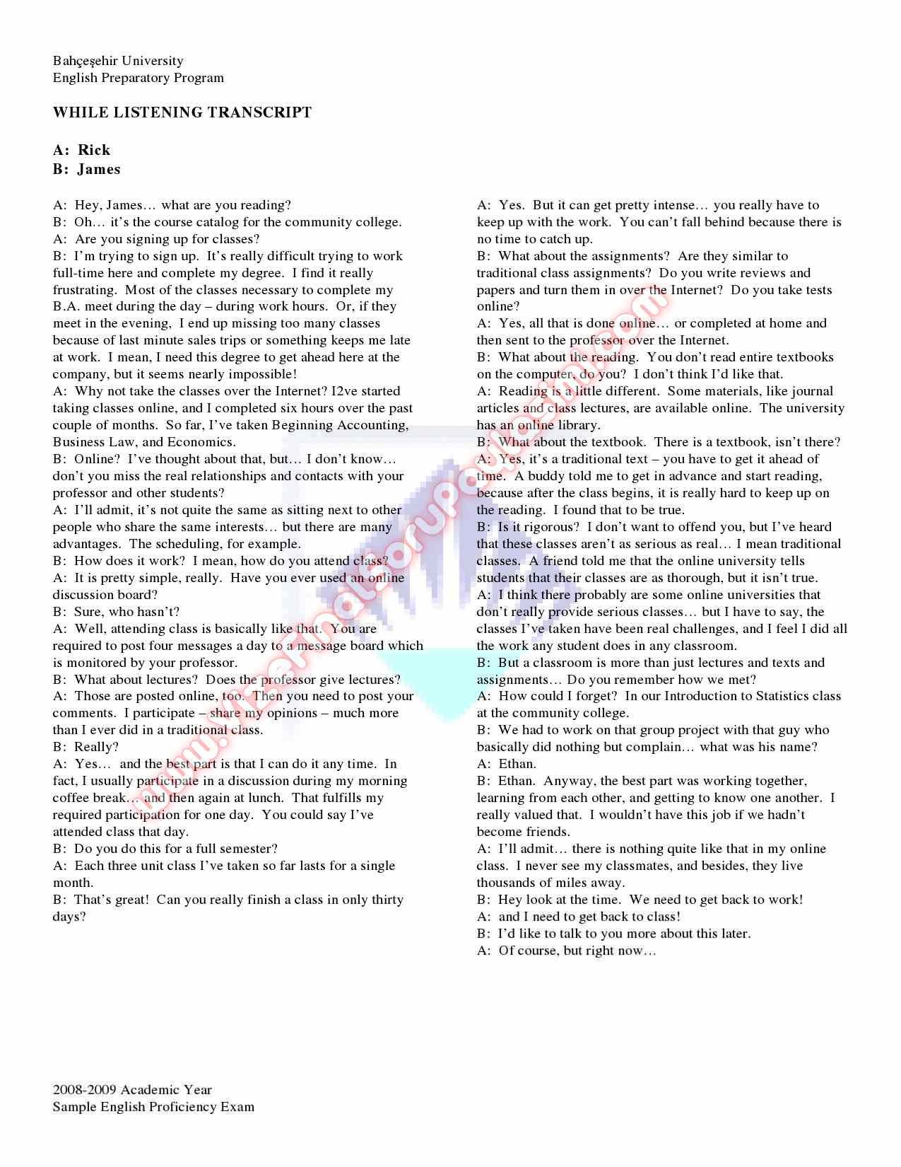 Bahçeşehir Üniversitesi İngilizce Muafiyet Soruları Ve Cevapları