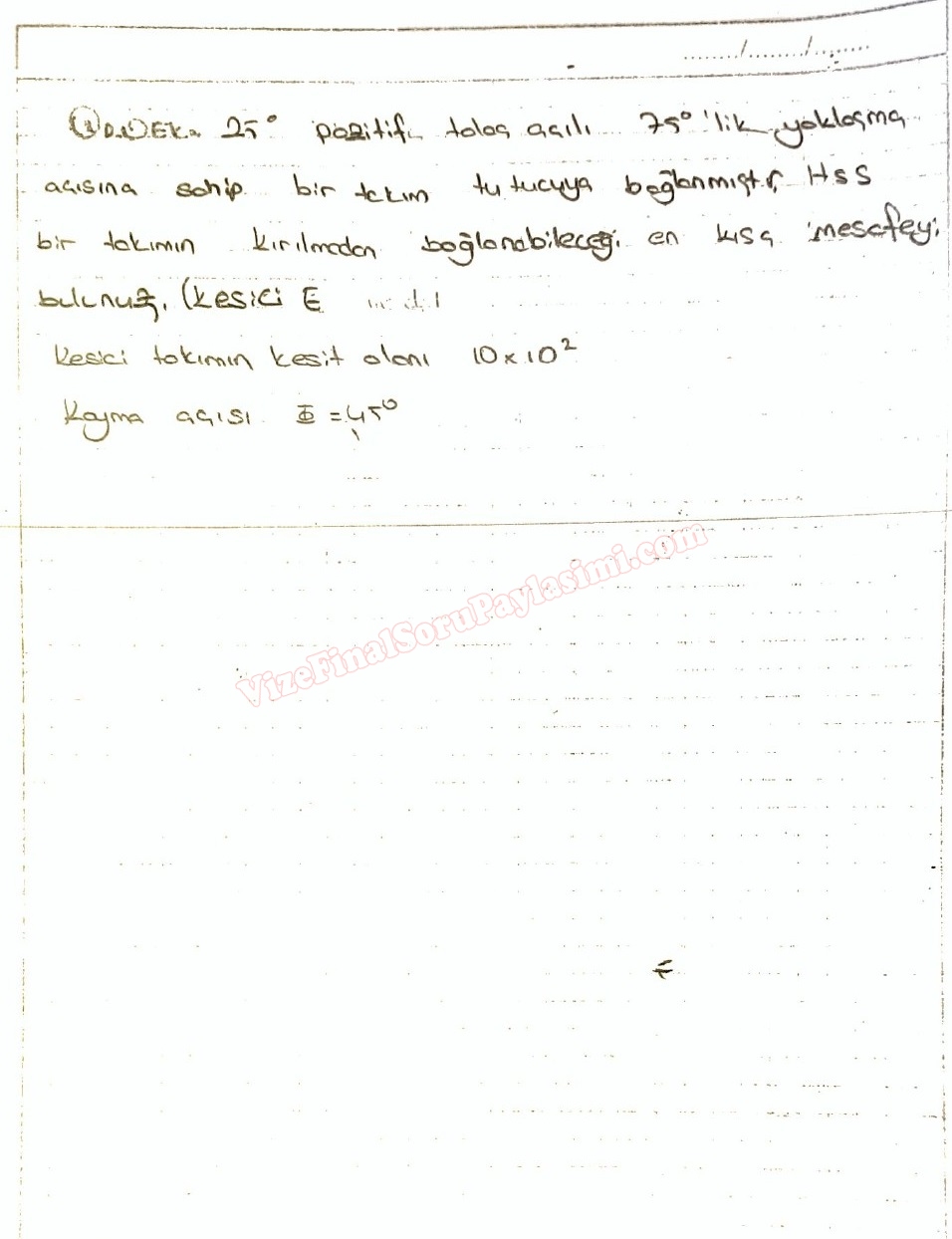Üretim Teknolojisi -1 Üretim Teknolojisi Takım Tezgahları Takım Ömrü Takım Modeli Ders Notları Örnek Sorular
