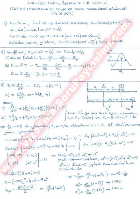 Titreşimler Ve Dalgalar Final Soruları Cevapları-2012
