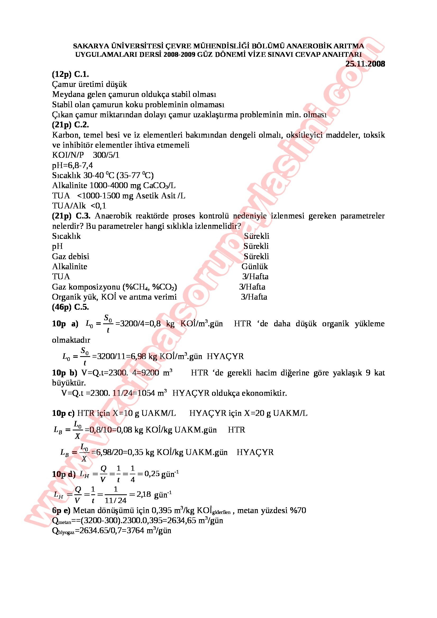 Vize ve Final Soruları / Sakarya Üniversitesi / Anaerobik Arıtma Uygulamaları Dersi